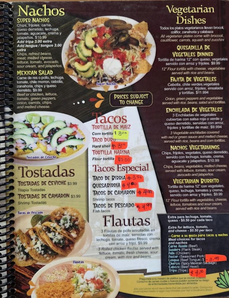 La Mexicana 4 offers a wide range of Mexican dishes, from street-style tacos to hearty entrees. The menu includes specialties like seafood options, including garlic shrimp and fried tilapia. Vegetarian items are available, catering to those looking for lighter fare.